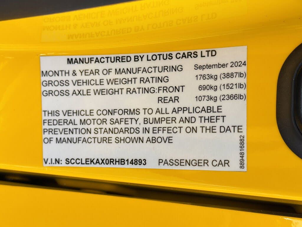 Wireless Phone Connectivity, Wing Spoiler, Trunk Rear Cargo Access, Trip Computer, Transmission w/Oil Cooler, Tires: 20″, Sport Tuned Suspension, Sport Leather Steering Wheel, Smart Device Integration, Side Impact Beams. This Lotus Emira has a powerful Intercooled Supercharger Premium Unleaded V-6 3.5 L/211 engine powering this Automatic transmission.*This Lotus Emira V6 First Edition Has Everything You Want *Seats w/Leatherette Back Material, Remote Releases -Inc: Power Cargo Access and Power Fuel, Remote Keyless Entry w/Panic Button, Redundant Digital Speedometer, Rear-Wheel Drive, Radio w/Seek-Scan, Clock, Aux Audio Input Jack, Steering Wheel Controls, Radio Data System and External Memory Control, Proximity Key For Push Button Start Only, Power Door Locks, Power 1st Row Windows, Perimeter/Approach Lights, Perimeter Alarm, Passenger Visor Vanity Mirror w/Passenger Illumination, Passenger Seat -inc: Manual Rear Seat Easy Entry, Outside Temp Gauge, Outboard Front Lap And Shoulder Safety Belts -inc: Pretensioners, Nappa Leather Seat Trim, Memory Settings -inc: Driver Seat and Door Mirrors, Mechanical Limited Slip Differential, Manual Tilt/Telescoping Steering Column, Low Tire Pressure Warning.* Driving Away with This Lotus Emira V6 First Edition Doesn’t Mean Compromising On Quality *Carfax reports: Carfax One-Owner Vehicle, No Damage Reported, No Accidents Reported.